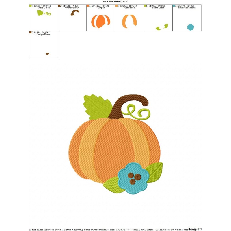 Pumpkin With Flower Machine Embroidery Design Pattern For Fall And Thanksgiving.