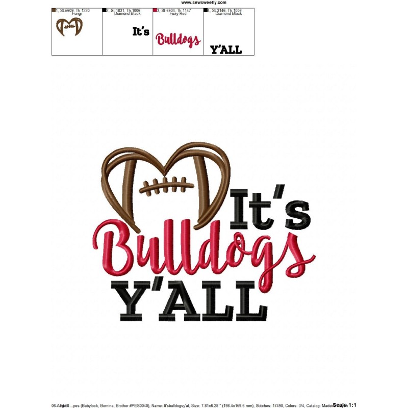 It's Bulldogs Y'all Football Embroidery Design Pattern-1