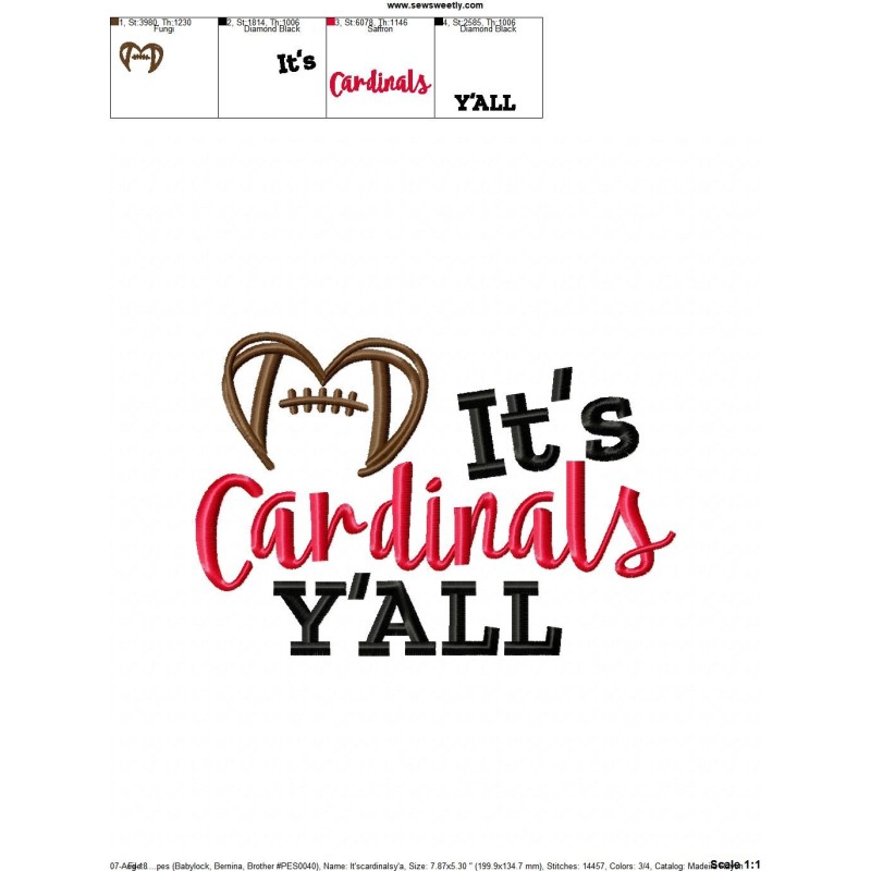 It's Cardinals Y'all Football Embroidery Design Pattern-1