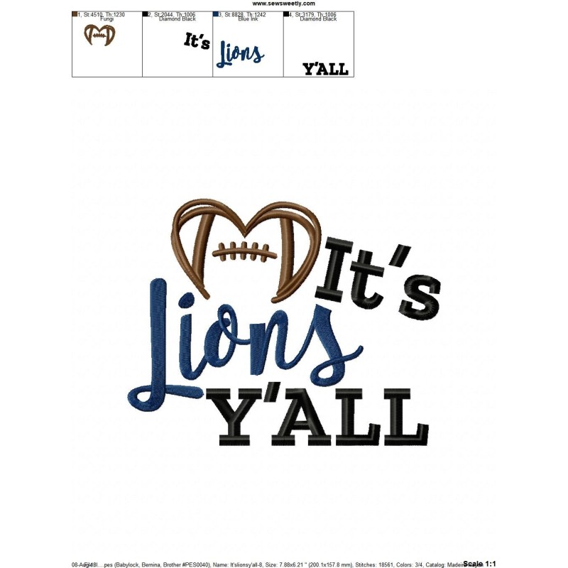It's Lions Y'all Football Embroidery Design Pattern-1
