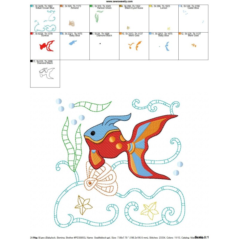 This Embroidery Design Set Includes 10 Beautiful Sea Animals Embroidery Designs With 2 Bonus Applique Design Versions.