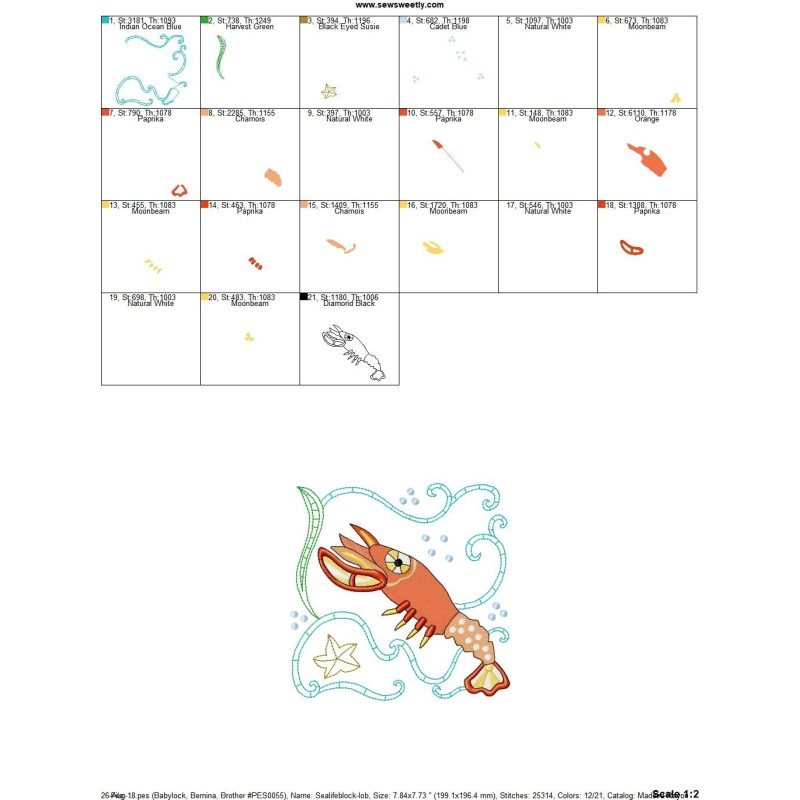 Sea Life Block- Lobster Embroidery Design Pattern-2