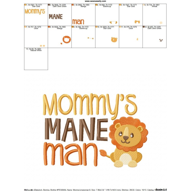 Mommy's Mane Man Machine Embroidery Design Pattern For Kids.