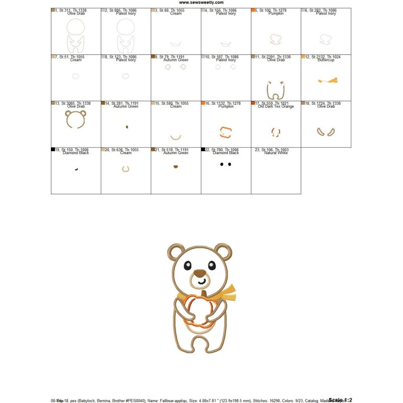 Fall Bear Girl-2 Embroidery Design Pattern-1