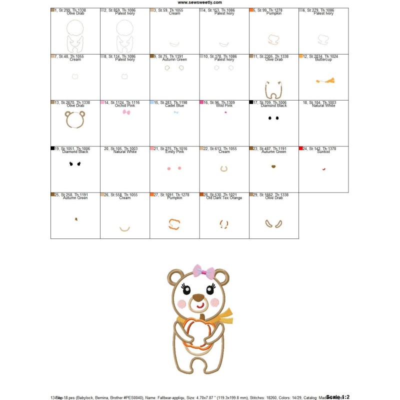 Fall Bear Girl Applique Embroidery Design Pattern For Fall And Thanksgiving.