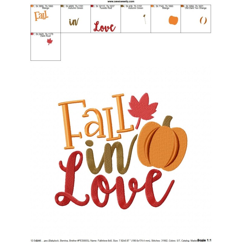 Fall In Love Machine Embroidery Design Pattern For Fall And Thanksgiving.