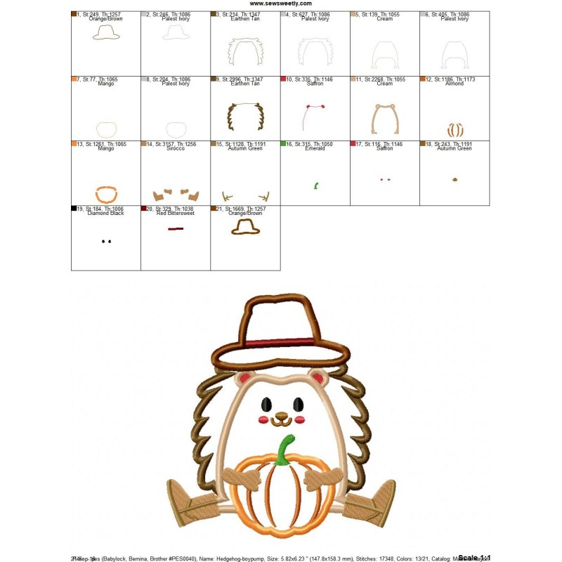 Fall Hedgehogs Boy Fill Embroidery Design Bundle