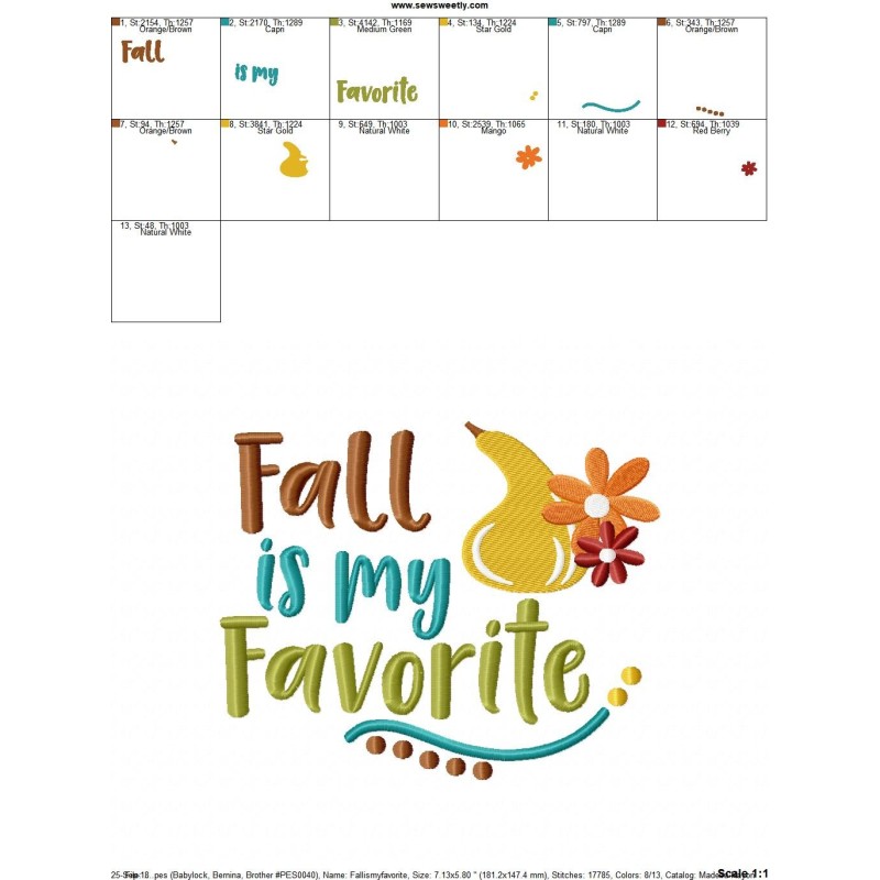 Fall Is My Favorite Machine Embroidery Design Pattern For Fall And Thanksgiving.