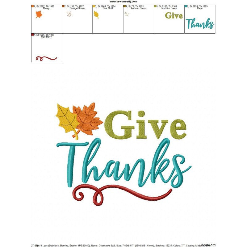 Give Thanks-2 Machine Embroidery Design Pattern For Fall And Thanksgiving.
