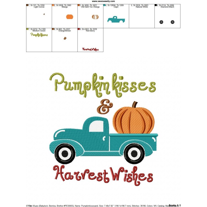 Pumpkin Kisses and Harvest Wishes Machine Embroidery Design Pattern For Fall And Thanksgiving.