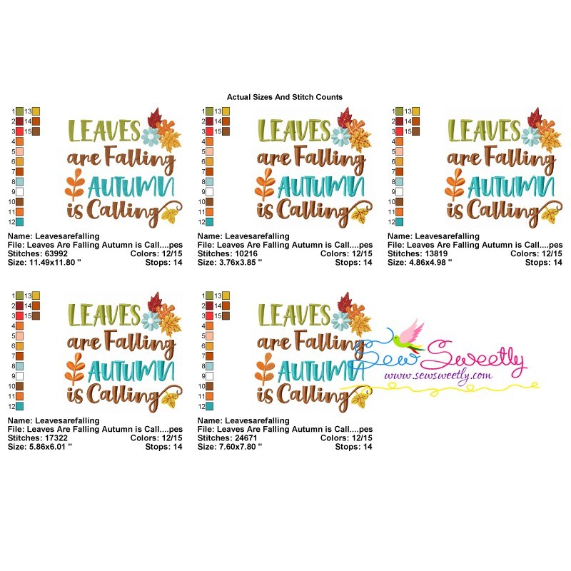 Leaves Are Falling Autumn is Calling-2 Machine Embroidery Design Pattern For Fall And Thanksgiving.