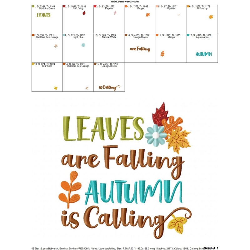 Leaves Are Falling Autumn is Calling-2 Lettering Embroidery Design Pattern-1