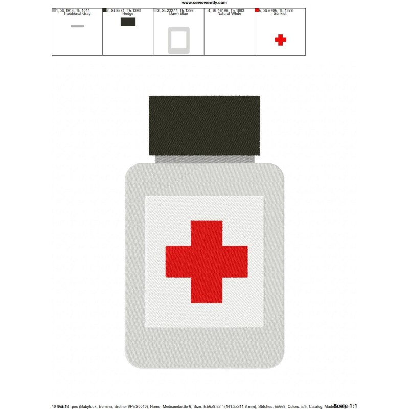 Medicine Bottle Machine Embroidery Design Pattern For Medical Projects.