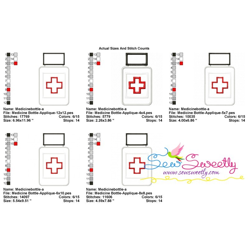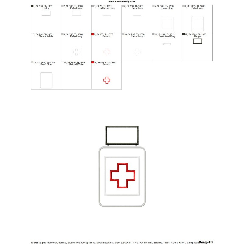 Medicine Bottle Machine Embroidery Applique Design Pattern For Medical Projects.