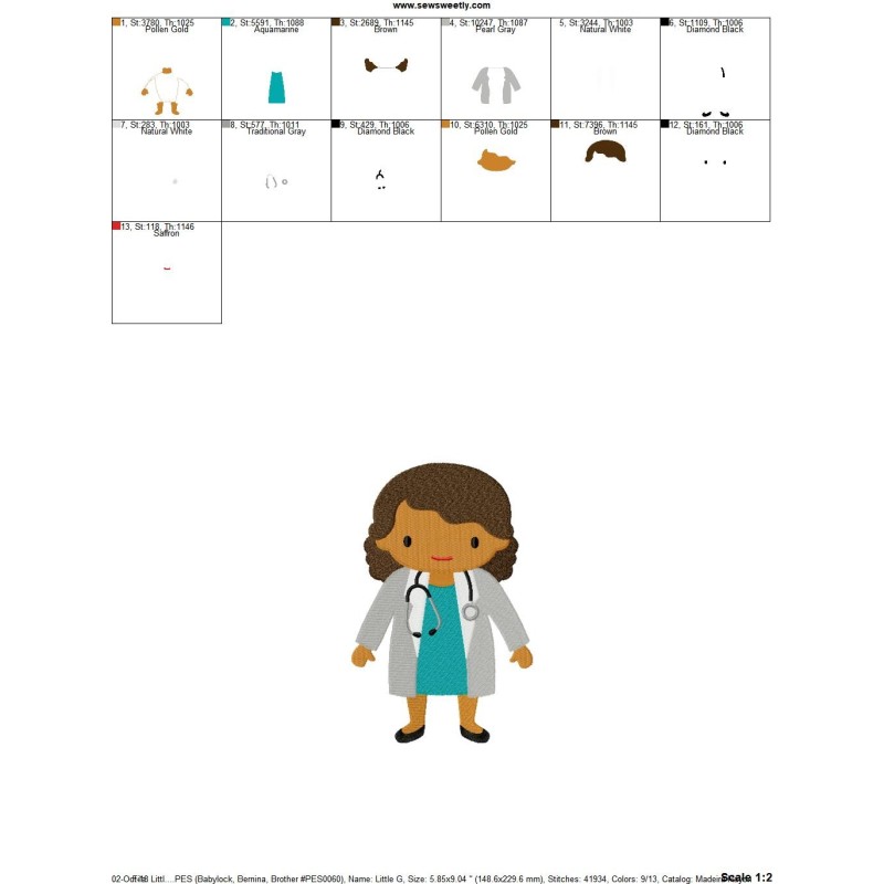 Little Girl Doctor Machine Embroidery Design Pattern For Medical Projects.