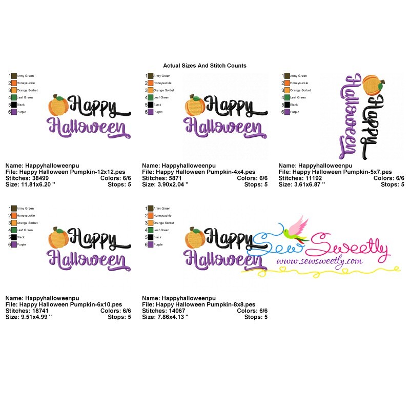 Happy Halloween Pumpkin Lettering Embroidery Design Pattern