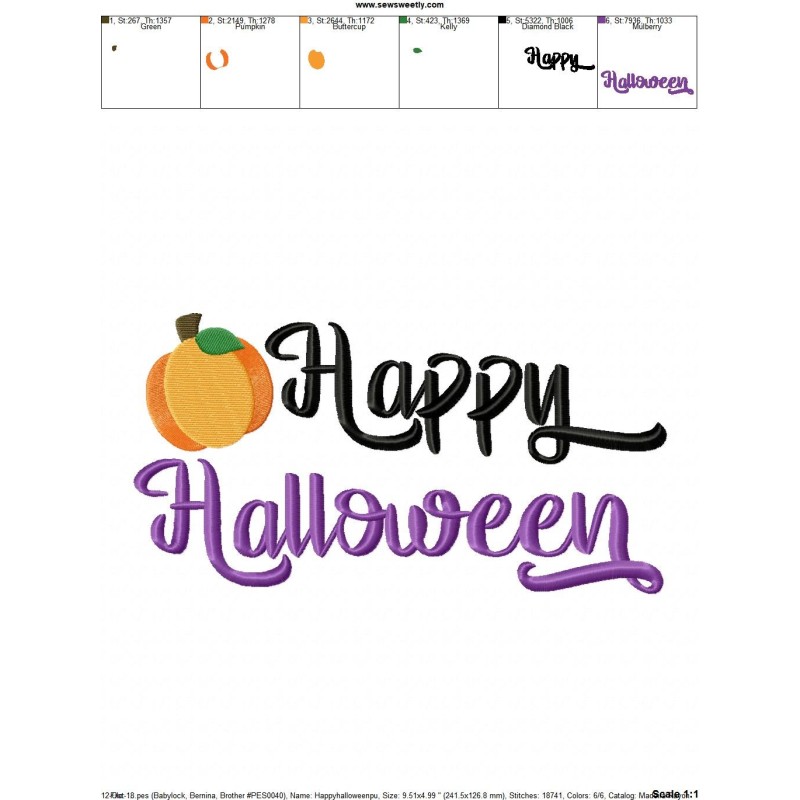 Happy Halloween Pumpkin Machine Embroidery Design Pattern For Halloween.