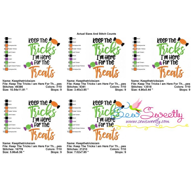 Keep The Tricks I am Here For The Treats Machine Embroidery Design Pattern For Halloween.