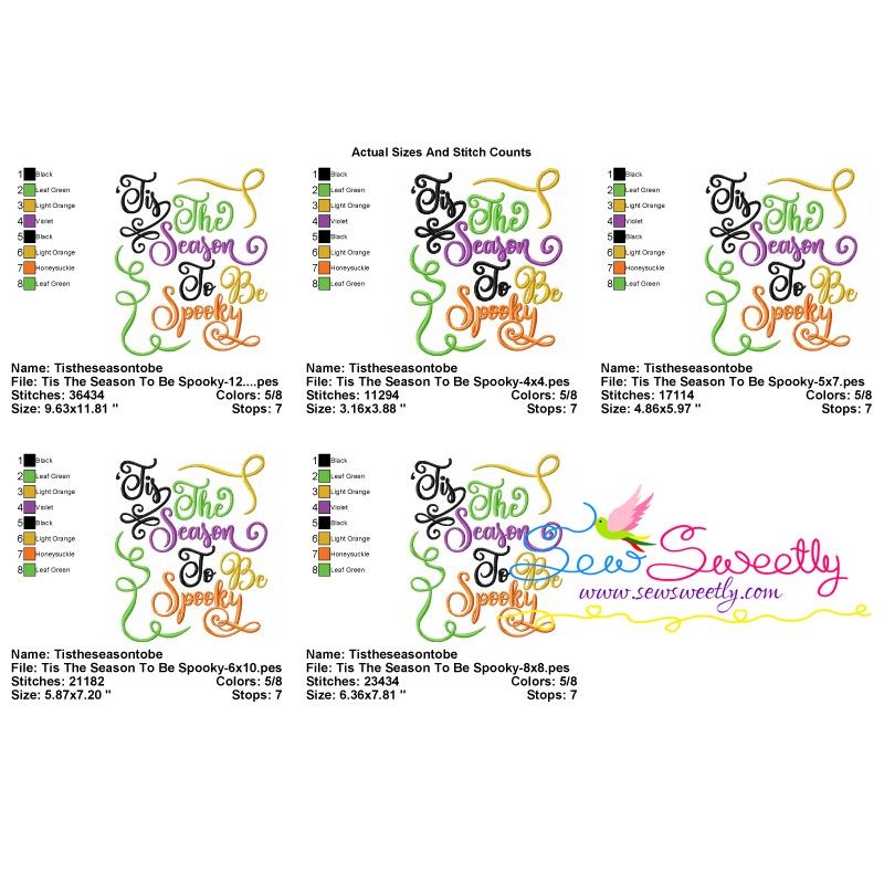 Tis The Season To Be Spooky Lettering Machine Embroidery Design Pattern For Halloween.