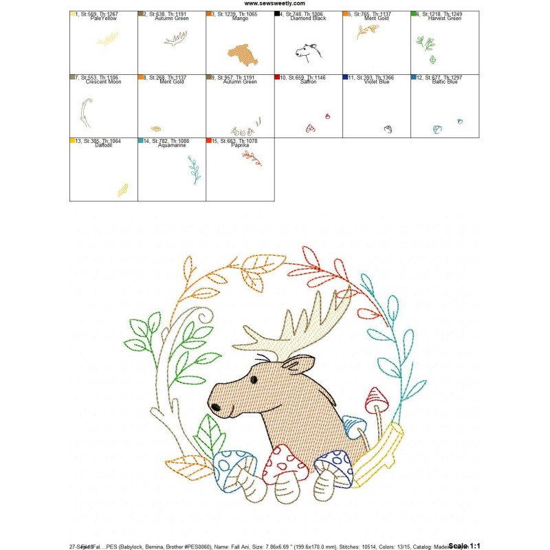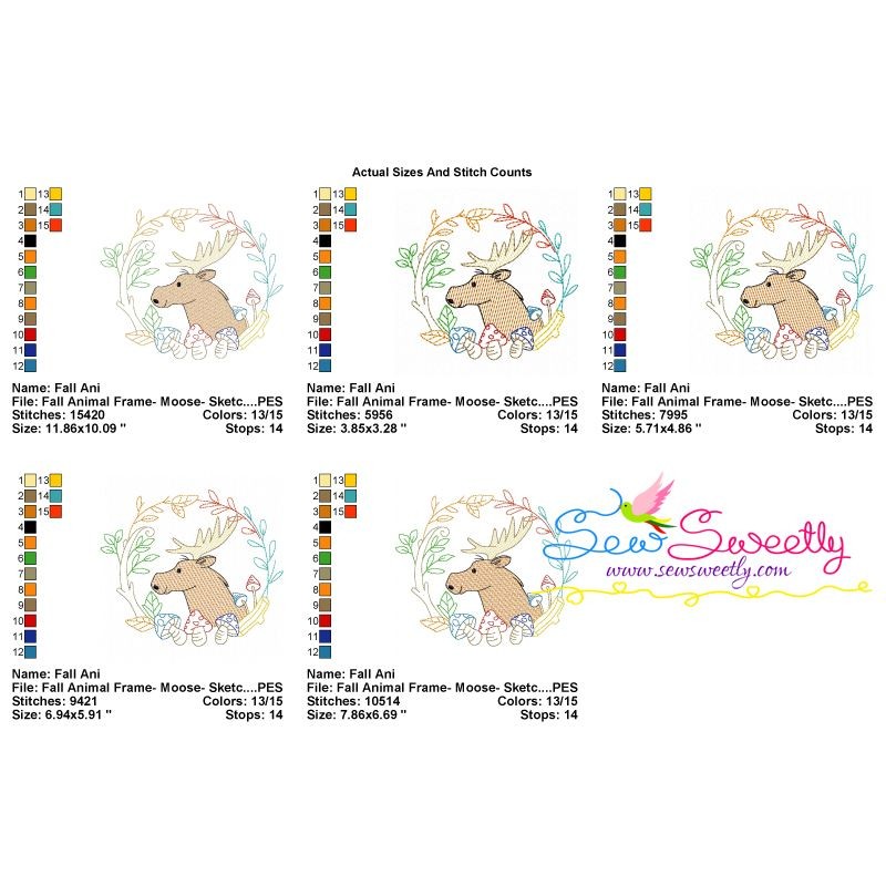 Fall Animal Frame- Moose Sketch Machine Embroidery Design Pattern For Fall.