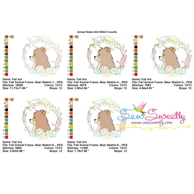 Fall Animal Frame- Bear Sketch Machine Embroidery Design Pattern For Fall.