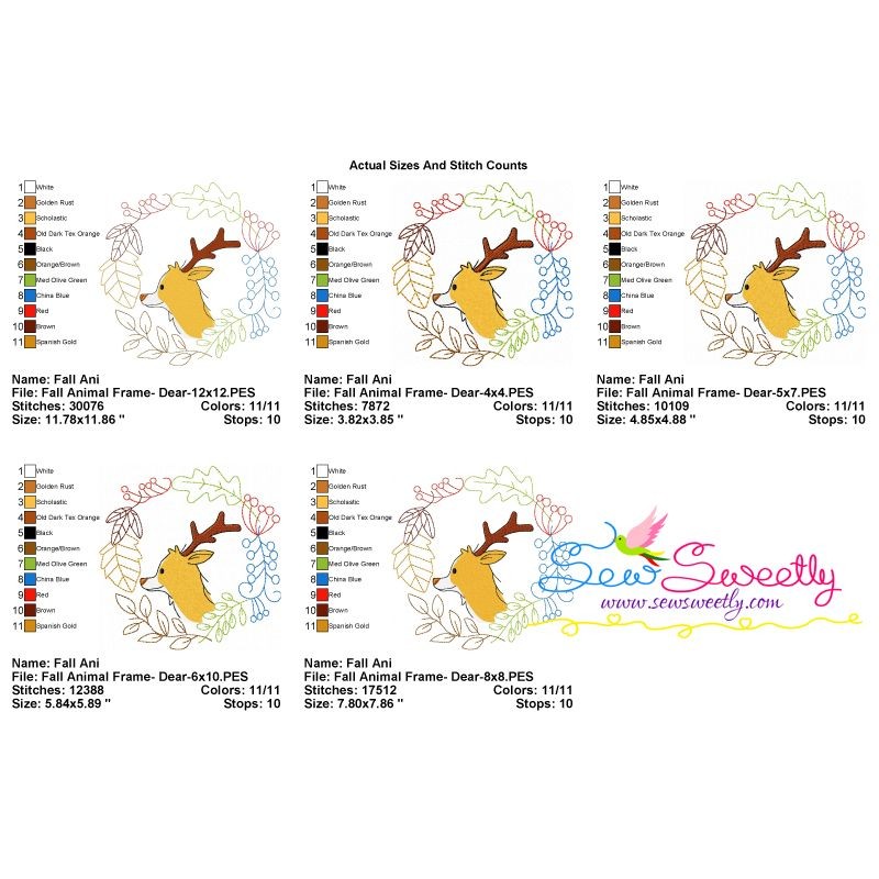 Fall Animal Frame- Deer Machine Embroidery Design Pattern For Fall.