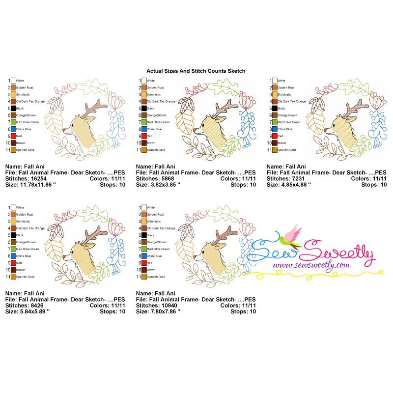 Fall Animal Frame- Deer Sketch Machine Embroidery Design Pattern For Fall.