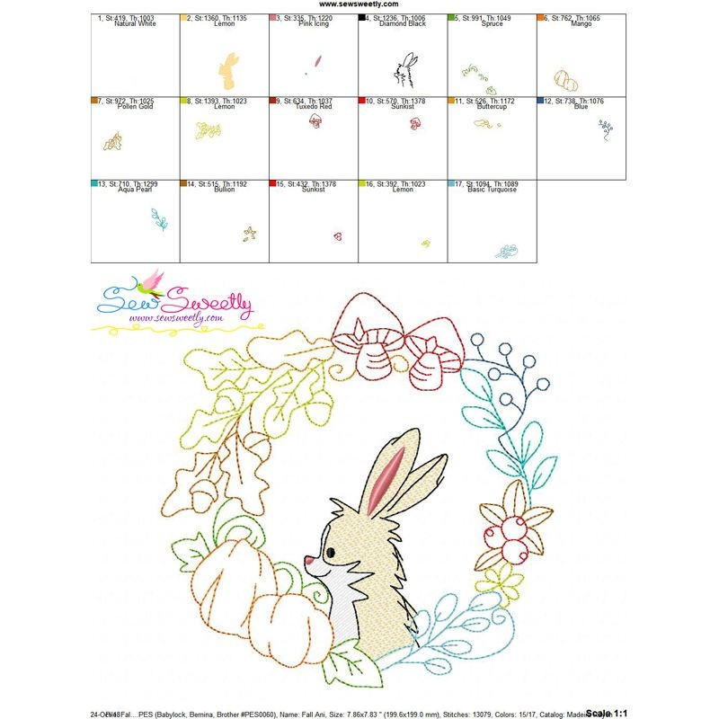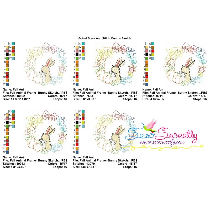 Fall Animal Frame- Bunny Sketch Machine Embroidery Design Pattern For Fall.