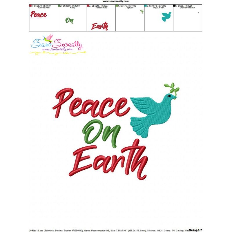 Peace on Earth Lettering Embroidery Design Pattern-1