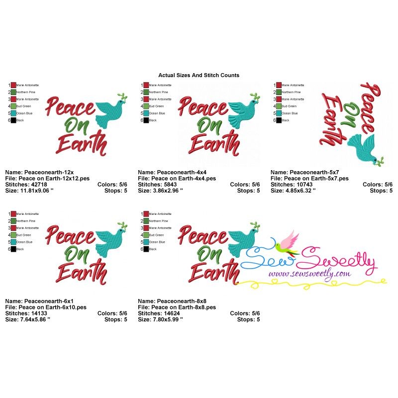 Peace on Earth Lettering Embroidery Design Pattern-3