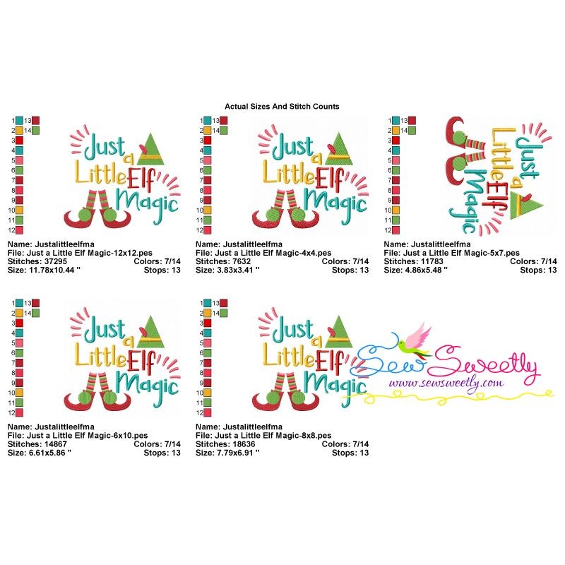 Just a Little Elf Magic Lettering Machine Embroidery Design Pattern For Christmas.