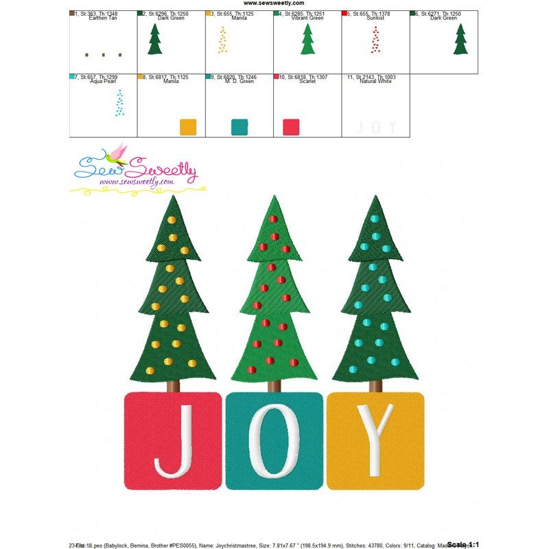 Joy Christmas Trees Lettering Embroidery Design Pattern-1