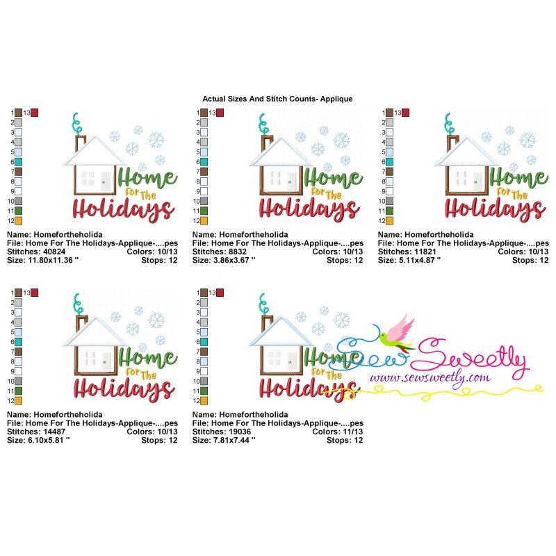 Home For The Holidays Lettering Machine Embroidery Applique Design Pattern For Christmas.