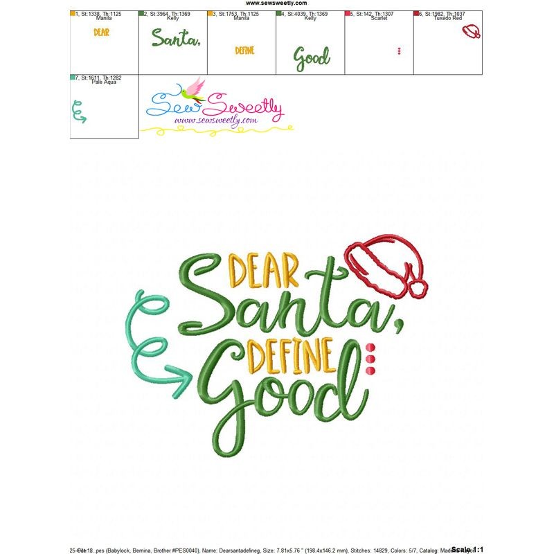 Dear Santa Define Good Lettering Embroidery Design Pattern-1