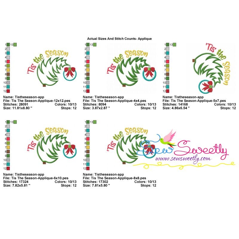 Tis The Season Lettering Machine Embroidery Applique Design Pattern For Christmas.