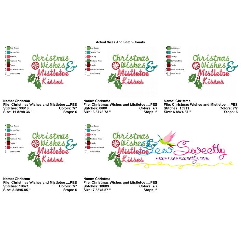 Christmas Wishes and Mistletoe Kisses Lettering Machine Embroidery Design Pattern For Christmas.