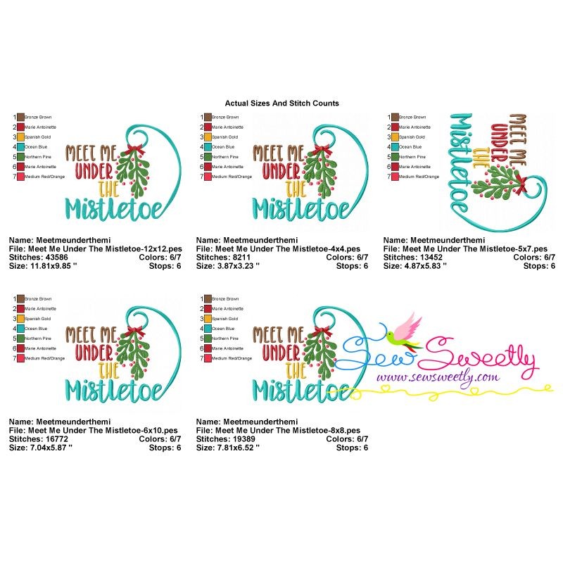 Meet Me Under The Mistletoe Lettering Embroidery Design Pattern-3