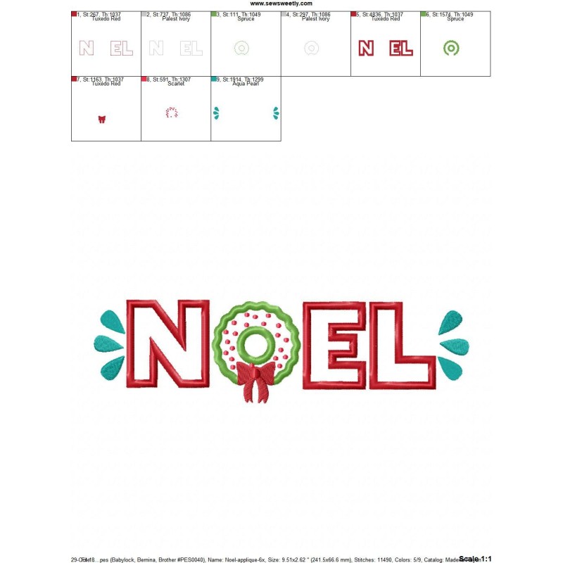 Noel Lettering Machine Embroidery Applique Design Pattern For Christmas.