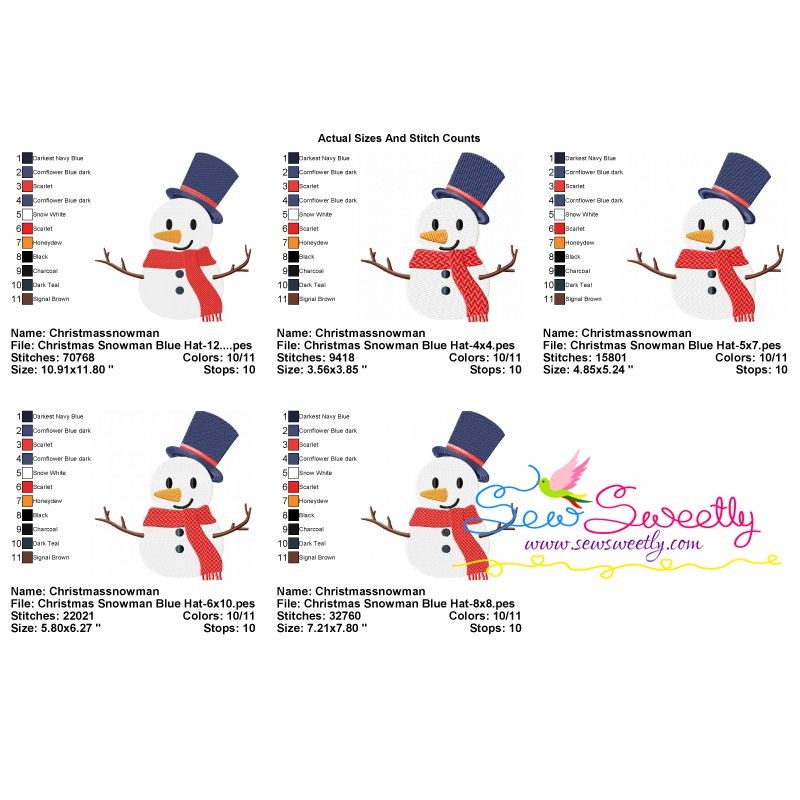 Christmas Snowman Blue Hat Embroidery Design Pattern