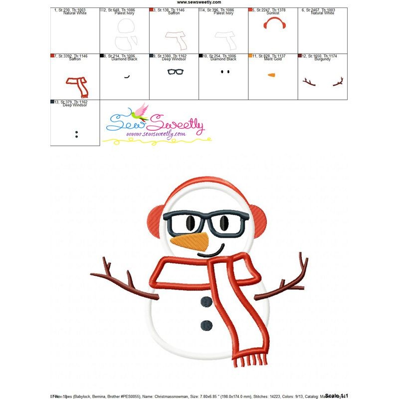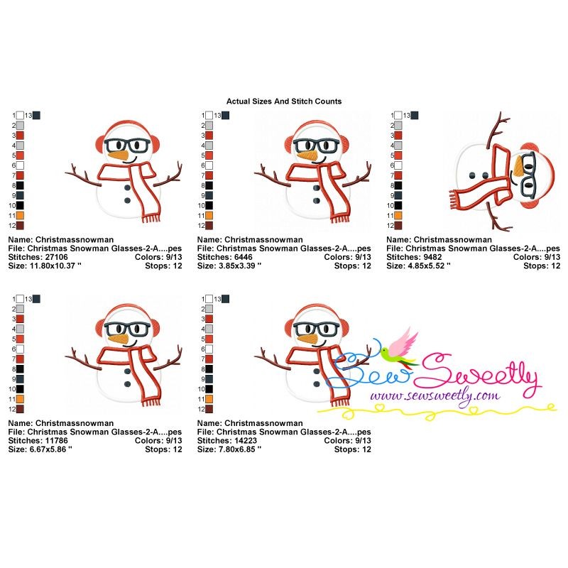 Christmas Snowman Glasses-2 Applique Design Pattern-3