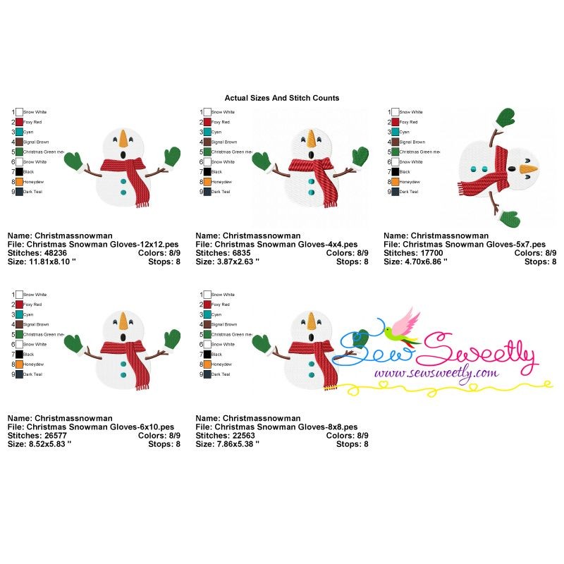 Christmas Snowman Gloves Machine Embroidery Design Pattern For Christmas.
