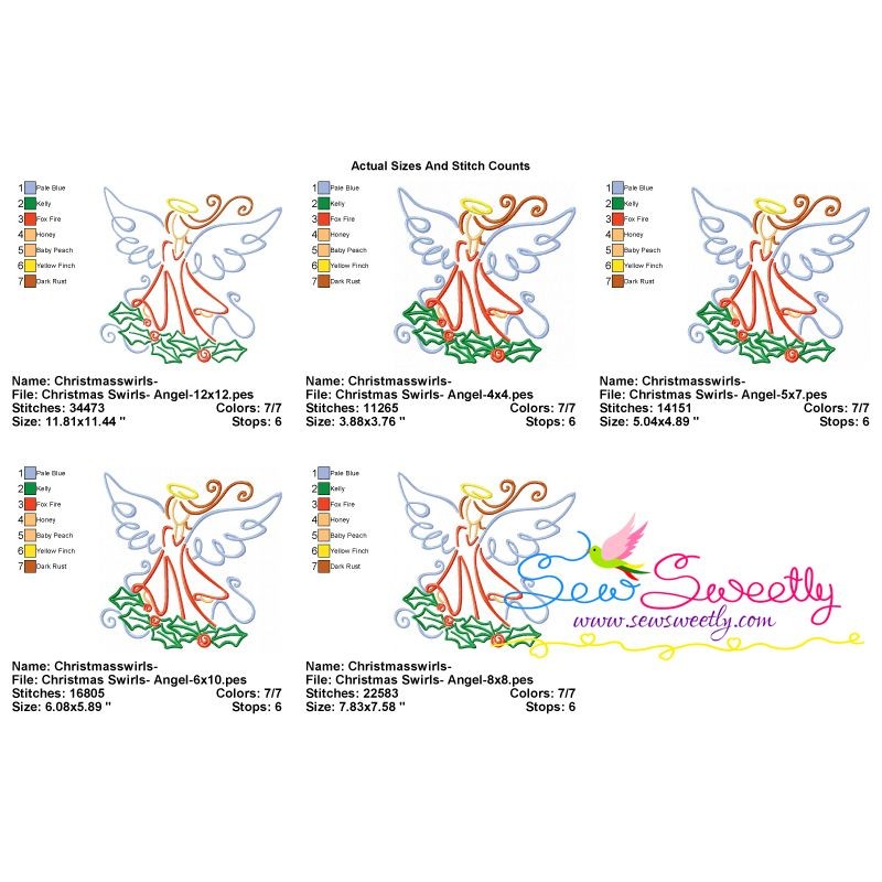 Christmas Swirls- Angel Machine Embroidery Design Pattern For Christmas.