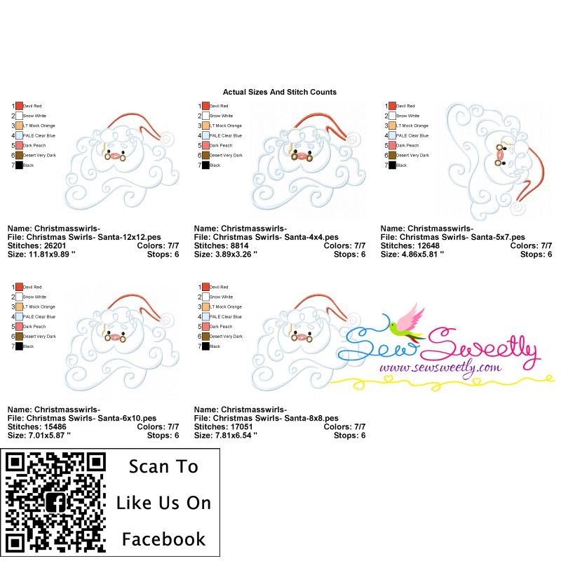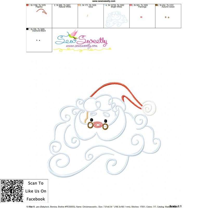 Christmas Swirls- Santa Face Embroidery Design Pattern-2