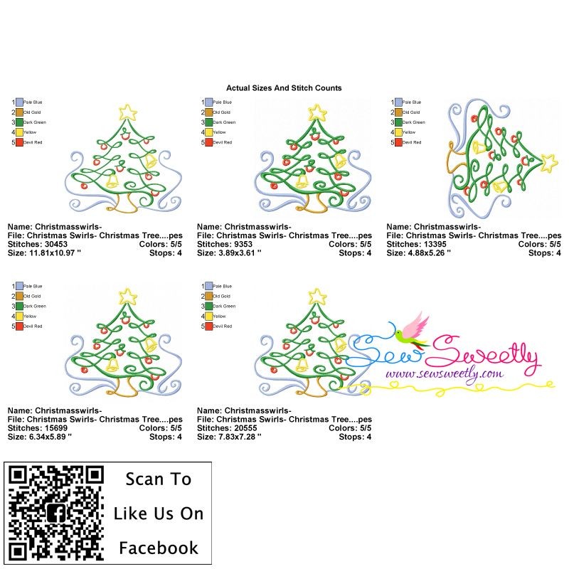 Christmas Swirls- Christmas Tree Embroidery Design Pattern