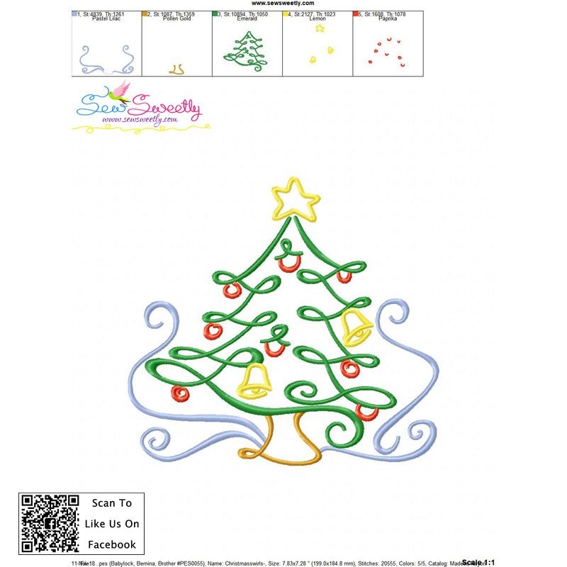 Christmas Swirls- Christmas Tree Embroidery Design Pattern-1