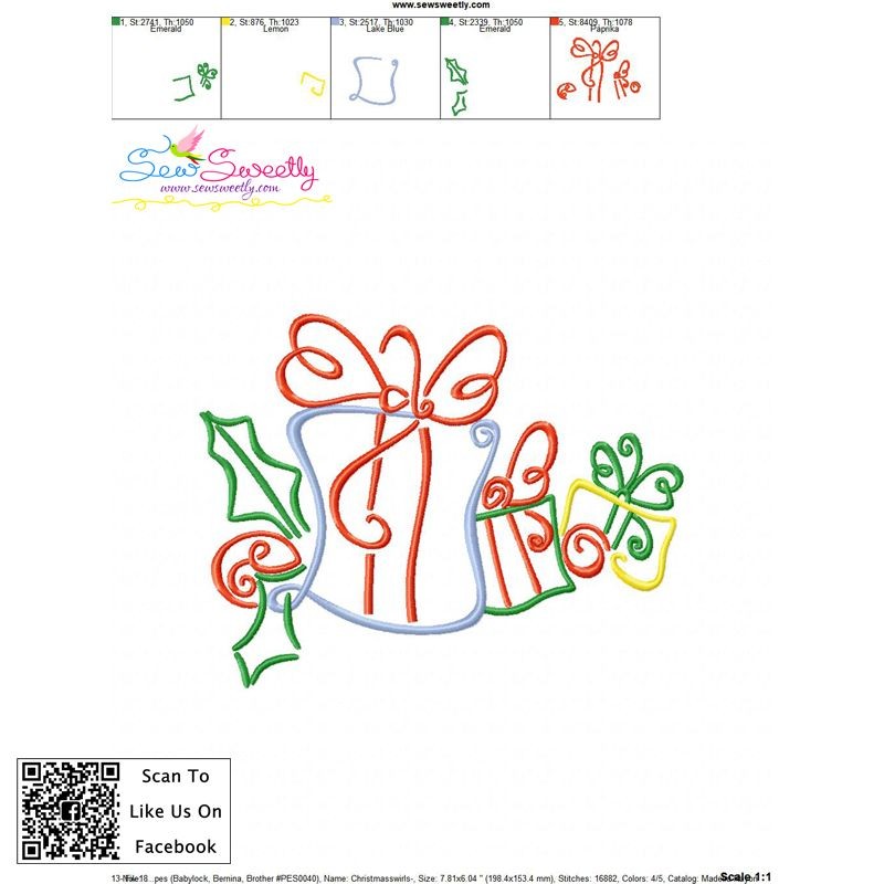 Christmas Swirls- Gifts Embroidery Design Pattern