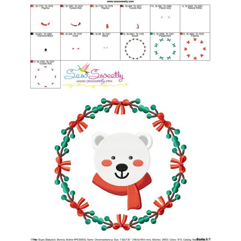 Christmas Frame Polar Bear Embroidery Design Pattern