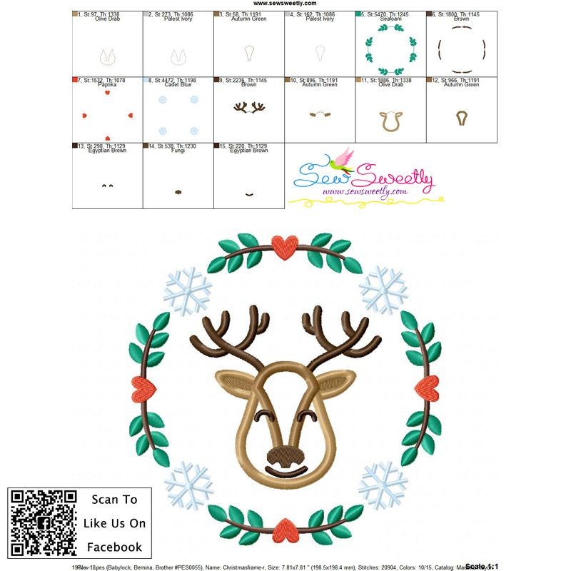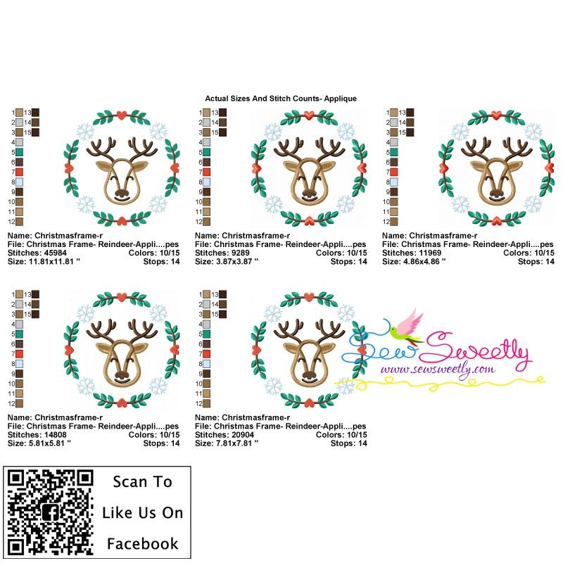 This Embroidery Design Set Includes 6 Beautiful Red Nose Silhouette Reindeer Floral Embroidery designs in both applique and filled stitch versions.
