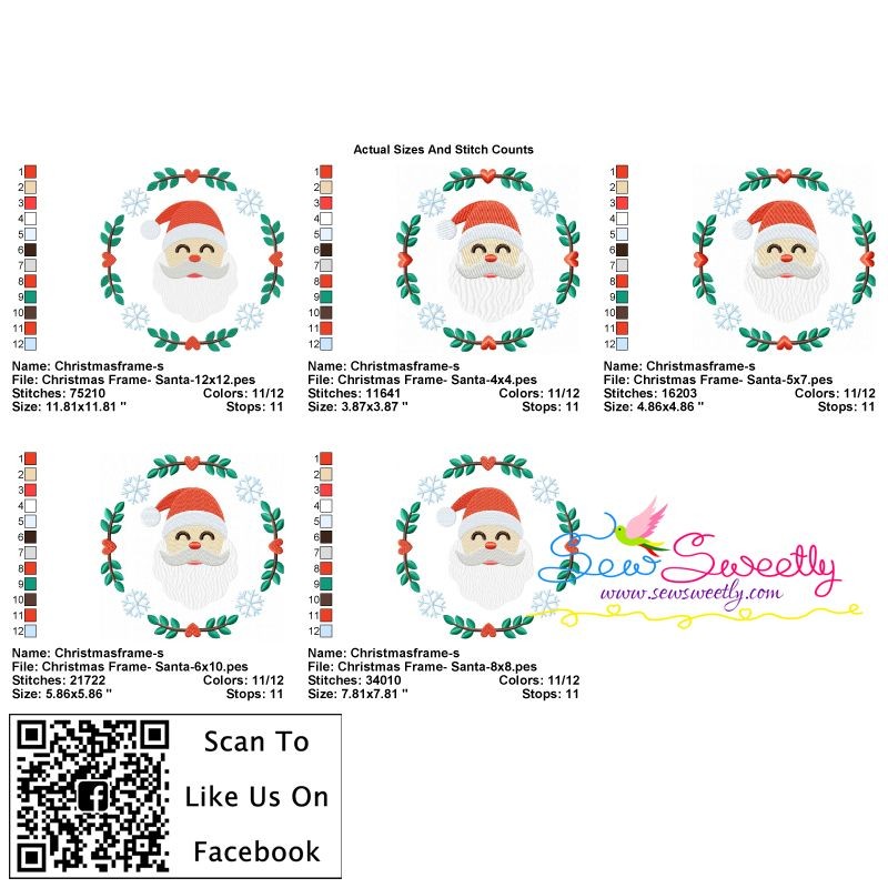 Christmas Frame- Santa Machine Embroidery Design Pattern For Christmas.