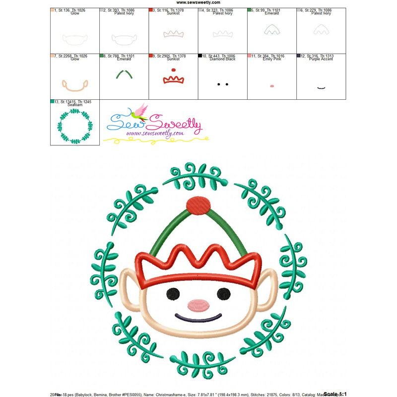 Christmas Frame ELF- 2 Applique Design Pattern-1